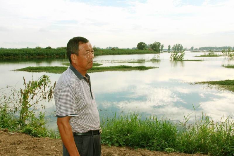 回放汛期以来的40多个日夜的全息情景:烈日下、风雨中、堤坝上、田地里、营区内……,人们很容易发现一个面色黑瘦清癯的人,他神情果敢坚毅,动作雷厉风行。——这个人就是场长方国强,他像大堤上的“旗手”,挥舞旗帜迎风招展,就是他带领着全场干部职工历经艰苦卓绝的拼搏,创造出了五场防汛守堤保家园的奇迹!