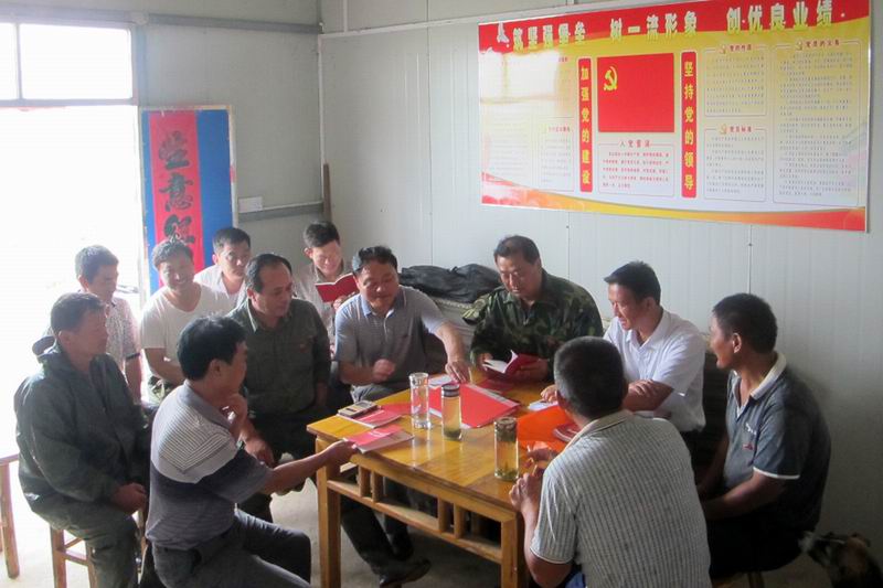五分场龙湖一村、二村、三村组成临时湖堤党支部,党旗高高飘扬在大堤上。党员们佩戴党徽,日夜坚守大堤,实行24小时不间断巡堤,成为农场防汛工作的中坚力量, “帐篷支部”也成了防汛抗洪的“桥头堡”。“只要党支部在,希望就不会破灭”,龙湖二村党员沈军华如是说。