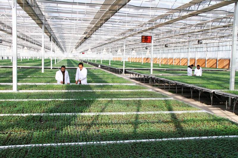 安徽农垦龙亢农场应用农业物联网技术,建设了5000平方米智能温室大棚,内设4500平方米可移动苗床,用于培育特种瓜果蔬菜苗,每年可提供果蔬苗600万株。图为农技人员在为幼苗做春季“体检”。(农民日报 2016年3月15日08版,李峰摄)