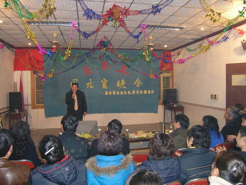 3月4日晚上,潘村湖农场场部大会议室张灯结彩,喜气洋洋,由种子公司工会和机关工会联合组办的“庆丰年闹元宵”晚会正在这里举行。两个单位职工轮番上台表演,精彩的节目不时博得观众热烈的掌声。场领导兴致勃勃地参加了联欢活动,并即兴表演了节目。晚会上还进行了有奖猜谜等游戏活动。图为一组活动场景。