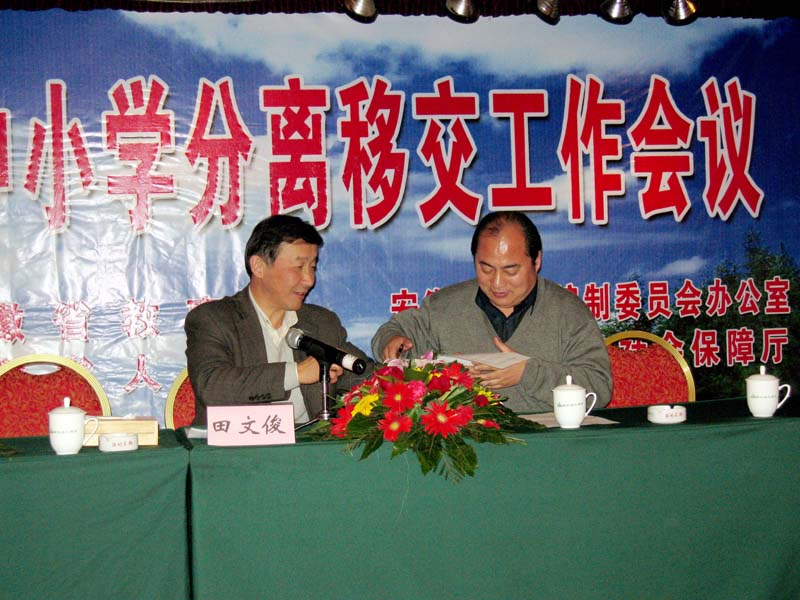 分离移交工作会上,集团公司副总经理刘超同志向与会人员深入地介绍了农垦企业中小学分离移交前期工作情况,董事长田文俊同志在会上对农垦办理移交工作提出了具体要求并分别与各农场主要负责人签定了责任书,以确保移交工作顺利完成。