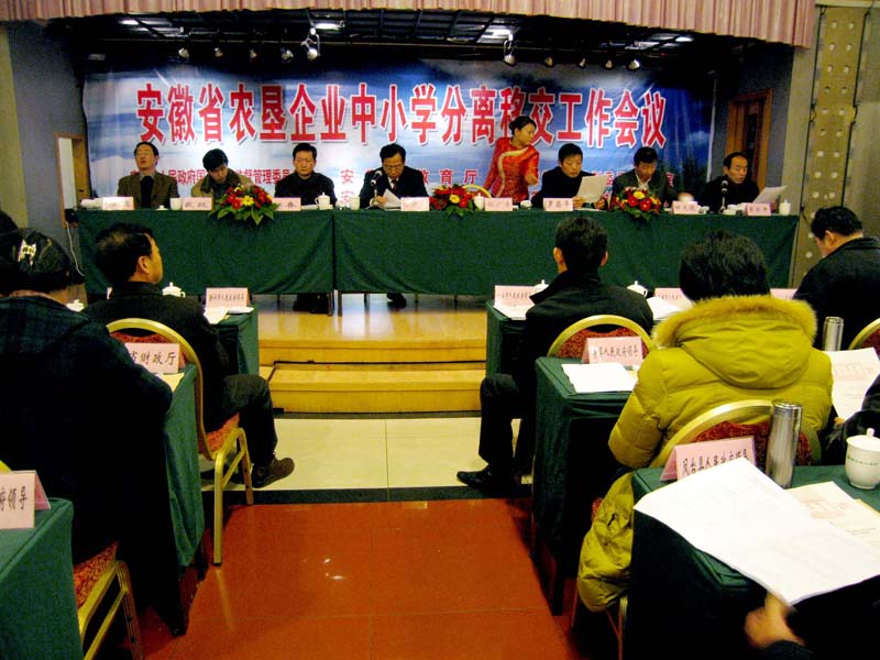 日前安徽省国有资产监督管理委员会、省财政厅、省教育厅、省人事厅、省机构编制委员会办公室、劳动和社会保障厅六部门联合制定下发了《安徽农垦企业中小学分离移交的实施意见》,并组织召开了由全省各有关地市县分管领导和教育部门负责人、农垦各企业主要领导参加的分离移交工作大会。这是我省农垦继公安移交地方之后,再次分离的一项社会职能,对提高农垦企业的运营效率,更好地发挥农垦企业的骨干和龙头作用,带动全省现代农业和社会主义新农村建设具有十分重大的意义。