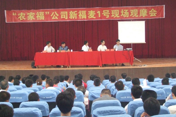 随后,在龙亢农场科技楼多功能厅召开了总结会,会议介绍了龙亢农场以及龙亢种业的经营发展情况、新福麦1号的生长特性、农家福公司的营销战略、产品体系建设等,龙亢农场、安徽省农科院、农家福公司三方都表示,今后要加强合作,共同做好新福麦1号的繁育、推广工作,为带动更多农民增收,推进全省三农事业建设作出更大的贡献。