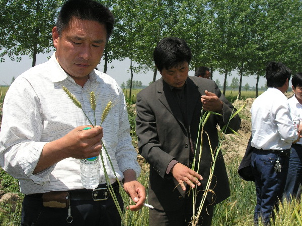 明光市政协主席陶瑾也闻讯赶到农场会见了蒙城客人并参加了观摩活动。陶瑾主席一边察看田间小麦长势,一边与韩大鸣场长就更好地发挥农场科技示范作用,大力发展现代农业,促进区域经济发展交谈起来。
