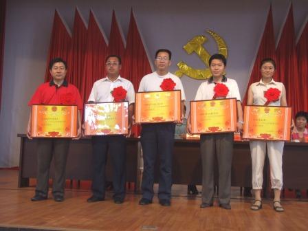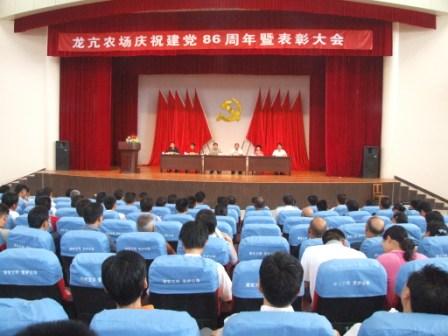 大会在雄壮的《国歌》声中开始,党委书记杨俊宇宣读了场党委《关于表彰先进党组织、优秀党务工作者和优秀共产党员的决定》,场党委委员对5个先进基层党组织、4名优秀党务工作者和33名优秀共产党员进行了颁奖,各类先进典型作了精彩的发言。会议同时表彰了庆祝“七一”构建和谐农场征文比赛、学习“决定”理论知识测试等系列党日活动中涌现出的获奖单位和个人。场党委副书记张建民代表党委发表讲话。“讲话”首先回顾了中国共产党走过的86周年光辉历程,总结了农场一年来农场党建工作和“三个文明”建设取得的成就。对如何围绕中心推进党建工作提出五点希望:一是注重发挥党组织、党员在和谐农场建设中的作用;二是广大党员做和谐家庭、和谐邻里的带头人;三是组织开展“党员承诺制”活动;四是创新民主评议党员制度,启动党员“挂红星”工程;五是开展好“寻找身边亮点”,积极“争先创优”活动。张建民最后要求各级党组织重点做好先进性教育活动、加强新农村建设、强化组织建设、和谐企业建设、党建知识培训、迎接党的十七大的理论学习等工作,特别是扎实开展好“作风教育月”活动。他号召广大党员干部立足“五个做起”:心系大局,振兴农场,从本职做起;转变职能,服务基层,从实际做起;严守党纪,练就自律,从点滴做起;提高修养,增进团结,从我做起;树立正气,创文明机关,从现在做起。做到“十带头”:带头学政策学科技、带头执行党的决定、带头进行产业结构调整、带头参加公益事业、带头参与文明创建活动、带头执行计划生育政策、带头维护稳定、带头建言献策、带头帮扶帮困、带头提高服务质量,为建设新农场做出应有的贡献。