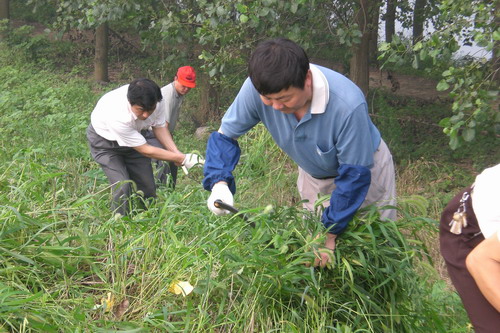 位于高邮湖畔的大圹圩农场严阵以待防大汛,保家园。7月11日晚,农场接到天长市防指《关于认真开展堤防清障工作的紧急通知》后,迅速组织机关、场直、医院、学校、二分场等单位80多人,于7月12日上午,赶赴高邮湖大堤砍伐灌木杂草。在场领导们的带领下,大家顶烈日,冒高温,不畏艰难,奋力除草清障。经过一天的艰苦劳动,高邮湖大堤农场责任段2200多米堤身的荆棘、杂草被全部清理干净,农场以较快的速度、较高的质量率先完成了这次防汛突击任务。 (夏庆芳)