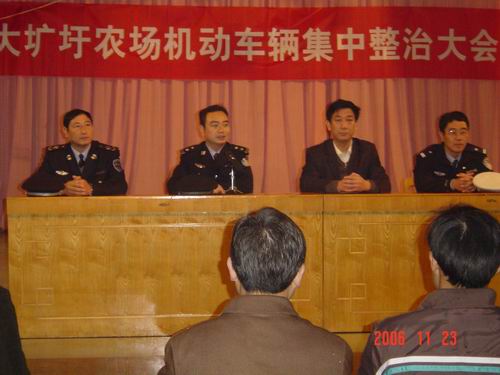 为了深入开展场容场貌专项整治工作,进一步加大机动车辆管理力度,彻底解决场部机动车辆乱停乱放问题,维护场内交通秩序和场部整体形象,构建平安和谐农场社会,11月23日,大圹圩农场协同天长市公安局、天长市交通局等有关部门开展了一次机动车辆集中整治活动。农场场容场貌专项整治工作领导小组成员参加了本次活动。分管此项工作的施广庆副场长在整治大会上作了动员讲话。 |