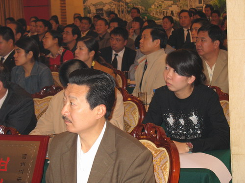日前,合肥市卫生局组织人员对全市申报食品卫生信誉度A级单位进行了复核评审,经综合评定,安徽农垦黄山大厦等68家单位被评为2006年度合肥市食品卫生A级单位称号,黄山大厦郑群副总经理作为A级单位代表在会上发言。(图为会议现场)