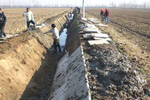 干支渠衬砌工程是农场2007年中低产田改造项目主要建设内容之一。项目规划设计的衬砌硬化干支渠共有4条,总长8746米。其中:干渠一条,长7107米,是贯穿全场,连接向阳站和东风站的场内最主要的排灌主渠道;斗渠三条,总长1657米,主要分布在农业第一管理区的原六、七分场和农业管二管理区的四分场。