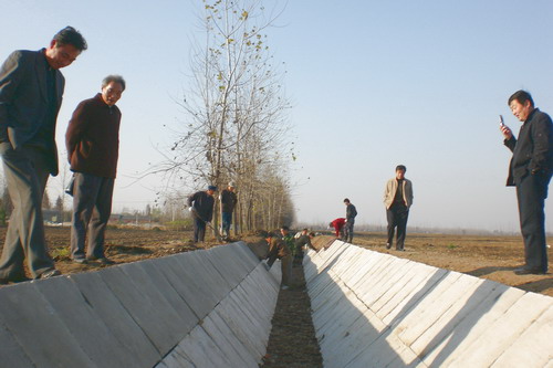 根据规划设计,支渠硬化采用6cm厚C20砼预制块衬砌(见图)。施工过程中,施工单位严格按照每条沟渠所设计的底宽、渠深和坡比要求规范施工,确保质量。据了解,支渠衬砌硬化工程计划在12月中旬全面竣工。