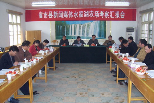 阳春三月,草长莺飞,正是城里人到乡下踏青休闲、体验农家乐的好时节。3月15日,由安徽日报、安徽广播电台、安徽电视台第一时间、安徽工人报、安徽科技报、江淮晨报、合肥晚报、合肥电视台、合肥广播电台、淮南电视台、长丰报及长丰电视台等省市县多家新闻媒体组团到水家湖农场蝶恋花草莓采摘观光园采风。在省市县新闻媒体水家湖农场考察汇报会上,朱为荣场长向新闻界朋友详细介绍了水家湖农场的基本情况、生产经营及产业发展现状。随后,采风团来到安禽公司,听取了公司负责人关于公司生产经营发展的情况汇报。最后,采风团先后来到蝶恋花草莓采摘观光园东园和南园,亲身体验草莓采摘观光的乐趣,并分头开展采访报道活动。