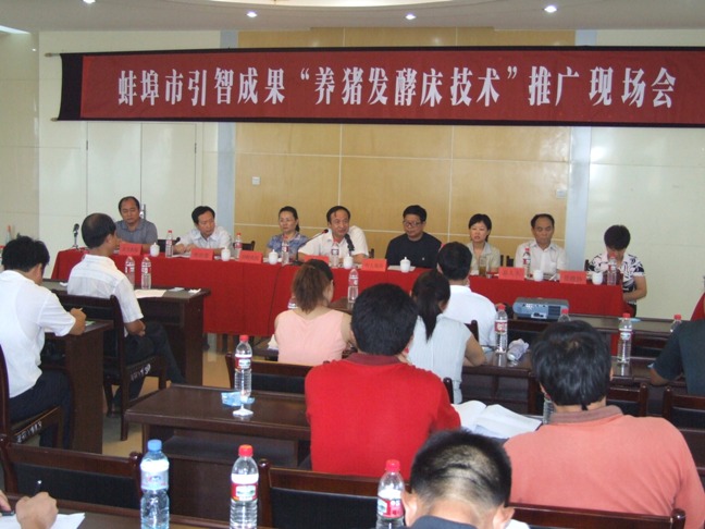 发酵床也叫生态床,利用全新的自然农业理念,结合现代微生物发酵处理技术提出的一种环保、安全、有效的生态养猪法。实现养猪无排放、无污染、无臭气、彻底解决规模养猪场的环境污染问题,它是集养猪学、营养学、环境卫生学、生物学、土壤肥料学于一体,遵循低成本、高产出、无污染的原则建立起的一套良性循环的生态养猪体系。它是工厂规模化养猪发展到一定阶段而形成的又一亮点,是养猪业可持续发展的新模式。该技术在蚌埠市养殖业中积累了宝贵的成功经验,为把此项技术深入推广,带动更多的养殖户增收致富,蚌埠市特举办了此次现场推广会。