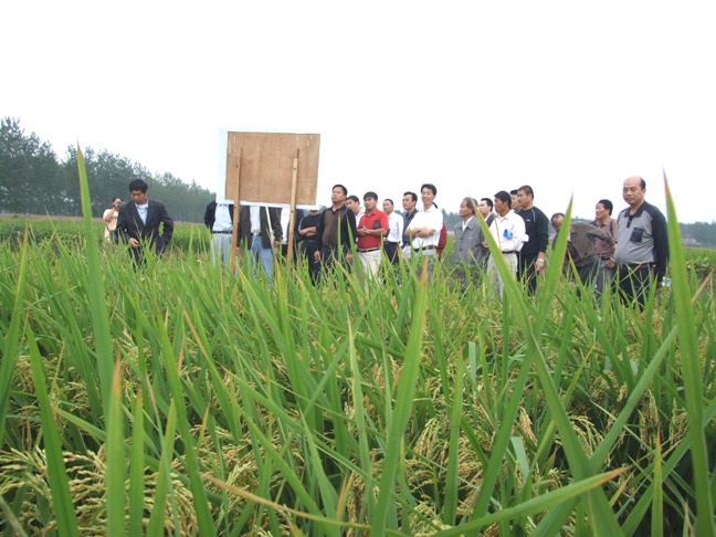 观摩团一行深入龙亢农场“绿旱一号”试验田、生产示范田进行实地观摩,听取了该品种水稻的生长特性的介绍,并现场观摩该品种的长势及表现,并经现场测产核实,“绿旱一号”平均亩产达550