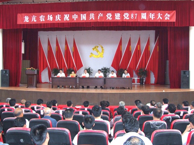 在热烈的掌声中,党委书记、场长杨俊宇做了重要发表讲话。讲话中他回顾了党的87年光辉历程,歌颂了党的卓著功绩。指出:农场全体党员要牢记发展是兴场富民的第一要务,紧紧抓住发展不放松,继续加快发展速度,提高发展质量。我们要紧紧围绕场党代会和今年职代会制定的发展思路和奋斗目标,按照集团公司“三化”、“三增”要求,以十七大精神和“三个代表”重要思想为指针,以发展现代农业和全面建设小康社会为目标,坚持以人为本,树立和落实全面、协调、可持续的发展观。进一步解放思想,深化改革,抓住机遇,乘势而上,把加大结构调整力度同培育新的经济增长点结合起来,把发挥科技进步作用和充分发挥人力资源优势结合起来,把企业增效和职工增收结合起来,把经济发展和社会进步结合起来,努力走出一条经济繁荣、生活富裕、和谐稳定的新路子。全场各级党组织要紧紧围绕富民强场和构建新型农场社会开展工作,从政治、思想、组织和作风上全面加强党的建设,充分发挥党组织的政治核心作用和党员的先锋模范作用,促进农场三个文明建设,为农场经济社会发展提供强大思想保障和精神动力。