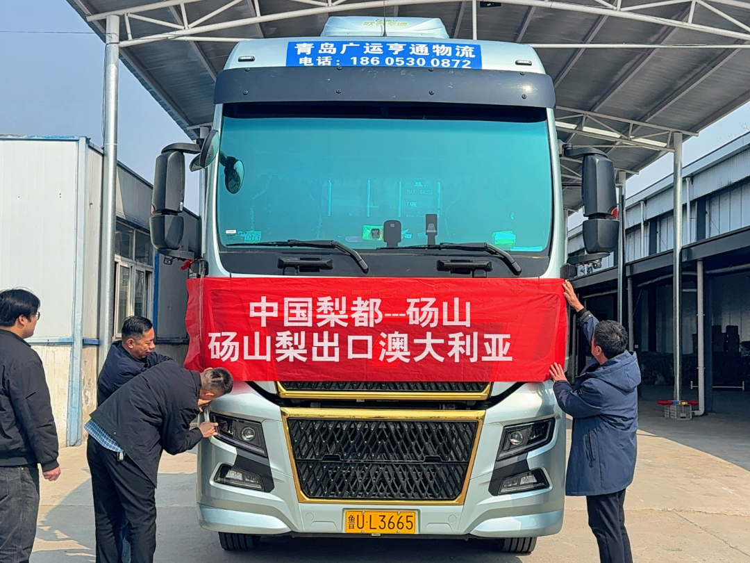 3月11日,满载7吨“皖垦翡翠”砀山梨的冷链专车从安徽农垦砀山果园场“云上梨园”驶出,将运抵澳大利亚,开启安徽农垦特色农产品出海新航程。