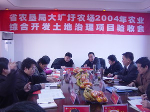 在18日上午召开汇报总结会上,农场场长徐成银向 各位领导和验收组专家致了欢迎词。集团公司李卓 民副总经理、姚礼发处长简要介绍了农业综合开发 项目在农垦企业实施情况以及这项利民、德政工程 在提高农业综合生产能力、实现企业增效职工增 收、促进农垦企业可持续发展方面所发挥的重要作 用;农场徐成银场长及部门具体负责同志介绍了 2003年一般多种经营项目、2004土地治理项目实施 和自检自验情况,以及项目实施后给农场带来的巨 大变化和显著效益。