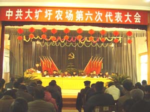 中共大圹圩农场第六次代表大会,经过全体代表的 共同努力,历时一天,自始至终充满了团结、民主 的气氛,圆满完成了大会的各项议程,在雄壮的 《国际歌》声中胜利闭幕。 (大圹圩农场 夏庆 芳)