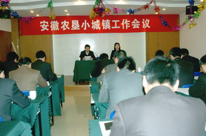 会上寿西湖农场、龙亢农场、宣郎广茶业总公司、 淮南农场、敬亭山茶场、夹沟农场等单位在会上作 了典型发言。会议制定了农垦文明小城镇考核标 准,还就今年内开展农场场容场貌专项治理工作进 行了布置,来自全系统各农场、公司分管小城镇工 作的农场领导和具体工作人员参加了会议,会议由 集团公司社区管理处主持召开。图为小城镇工作会 议会场。